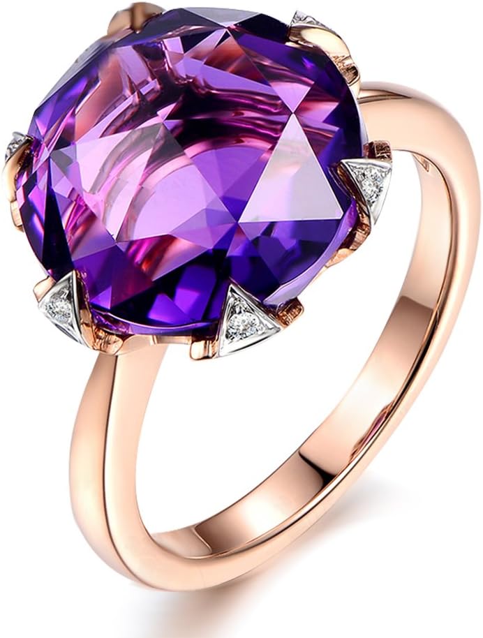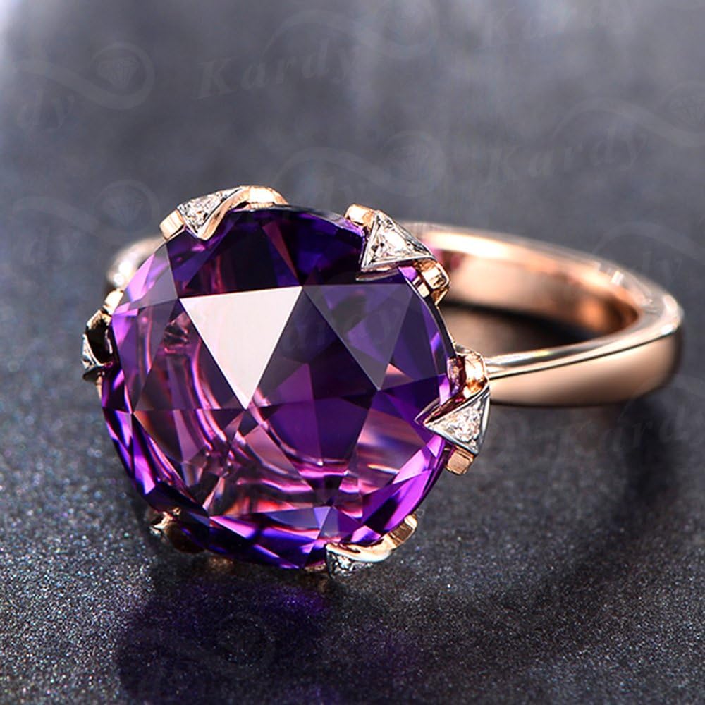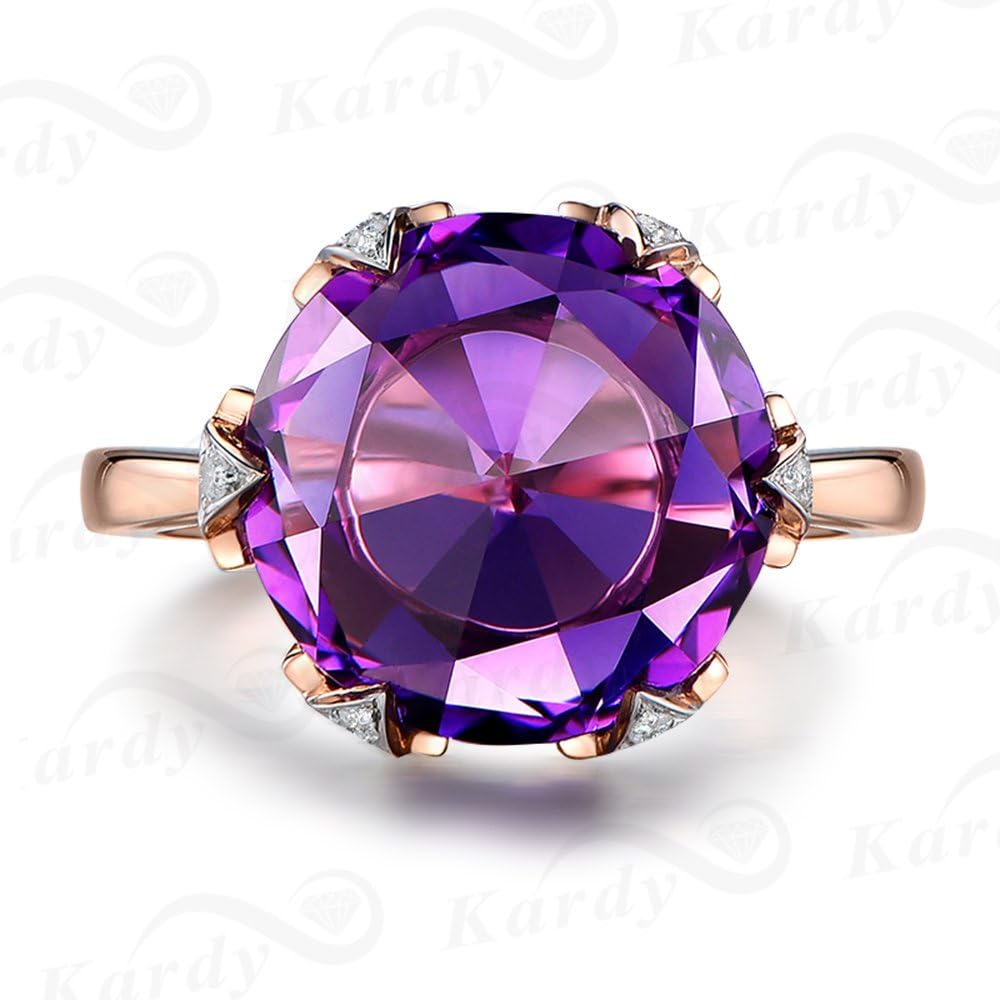 Kardy Fashion Trendy Natural Amethyst Gemstone Promise 14K Solid Rose Gold Wedding Engagement Band Diamond Ring for Women