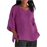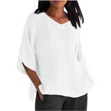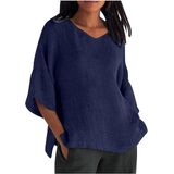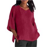 Womens Cotton Linen T Shirt Casual 3/4 Length Sleeve Blouse V Neck Gauze Boho Shirts Summer Trendy Loose Fit Clothing