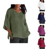 【Features】Our linen shirts featuring 3/4 sleeve,plus size,casual crew neck,solid color,simple and fashionable, trendy and timeless.