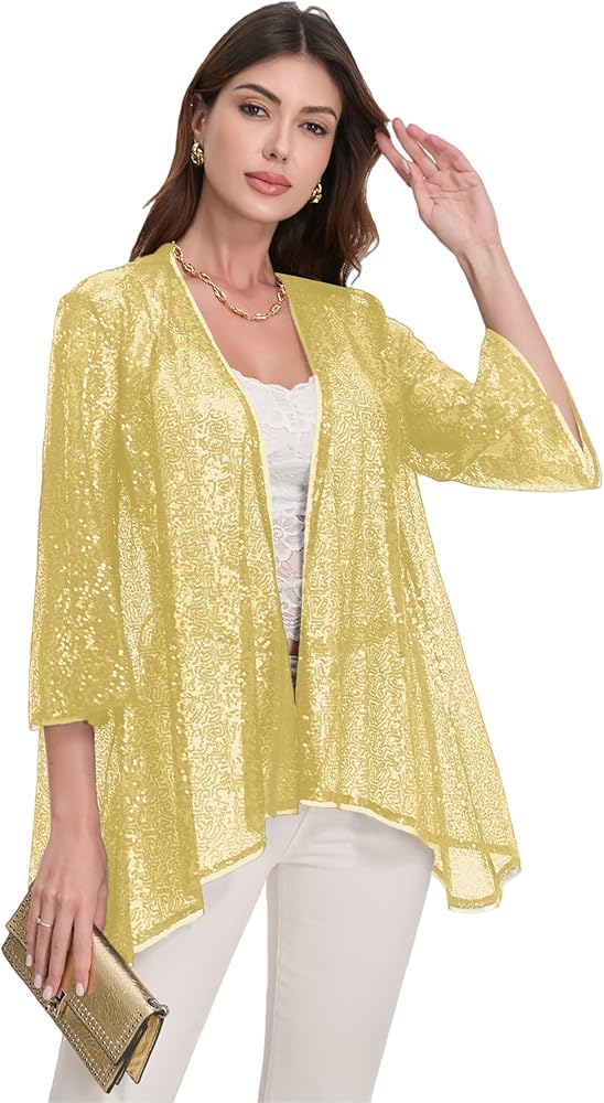 Stunning Design: Our Sparkly Sequin Jacket is designed for ladies who want to shine bright. Featuring full sequins and three-quarter sleeves, this glamorous outerwear makes you stand out in any crowd, perfect for nighttime events or festive occasions