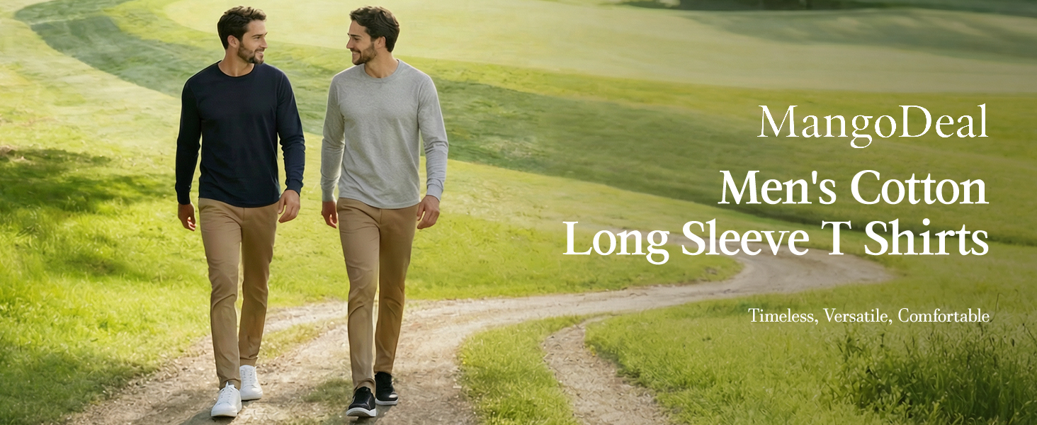 Classic crewneck long-sleeve design: A timeless crewneck silhouette with long sleeves and open cuffs defines these long sleeve shirts for men, adding a refined touch to any outfit.