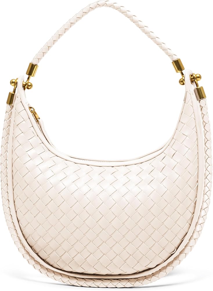 [Chic Crescent Design] Your new favorite woven purse for women, featuring a designer crescent shape crafted from soft woven vegan leather. Two braided handles and gold-tone hardware give it a refined, eye-catching look that stands out in any setting.