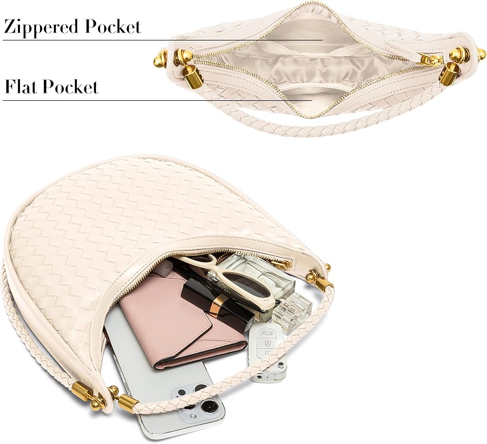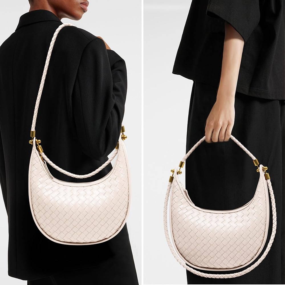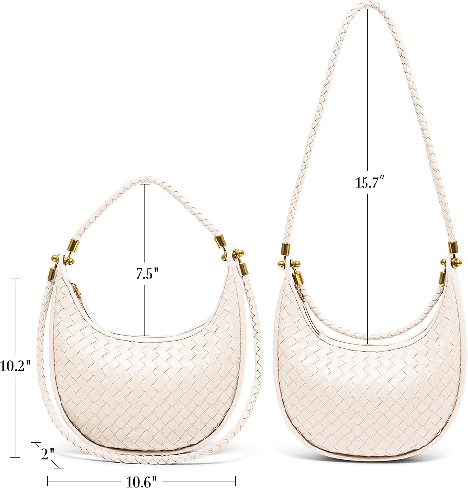 [Elegant, Handy Size] With dimensions of 10.6" x 2" x 10.2", and straps measuring 7.5" and 15.7", this woven shoulder bag easily transforms from a handbag to a small crescent shoulder bag under the arm purse, perfect for everyday use.