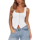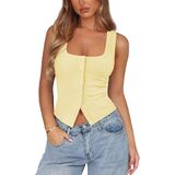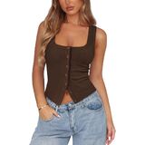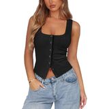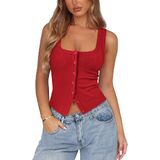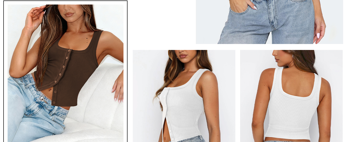 【Features】Ribbed button down tank features button front closures, square neck, low cut, backless, solid color, sleeveless, silm fit cut and cropped design accentuate the waistline, making it a stylish and practical item in any woman's wardrobe.