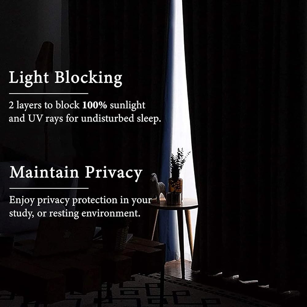 ENERGY SAVING : Our blackout fabric balances room temperature by insulating against summer heat and winter chill, reducing air conditioning costs. Protect your furniture, floors and artwork from the ravages of the sun. The greatest benefit is to bring you a good night's sleep, making you full of energy every day. These curtains also allow you to maintain utmost privacy from the outside world.