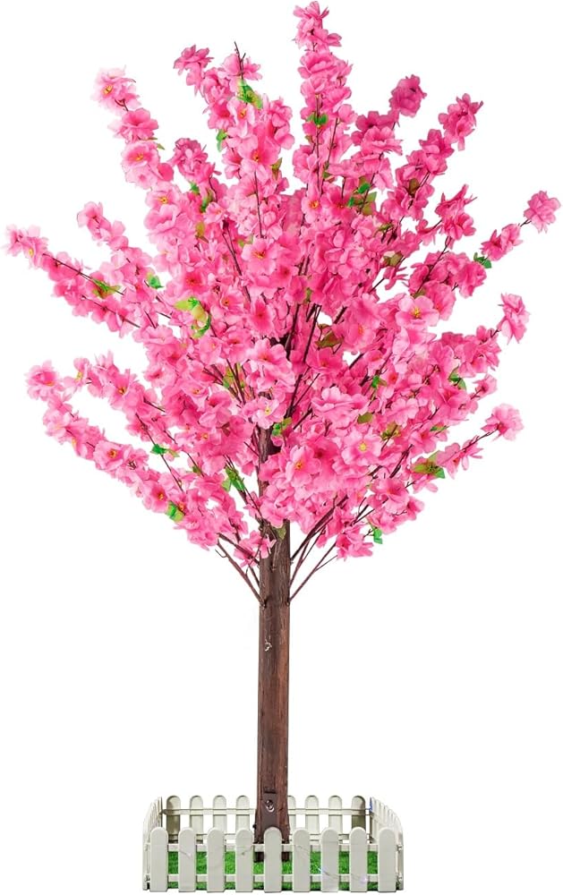 PACKAGE AND SIZES: Four sizes to fit your needs perfectly: 4ft/5ft/6ft/7ft, clearly textured pink flowers and adjustable branches makes this fake tree a timeless home decor, perfect for compact spaces. Recommended for decorative indoor use.