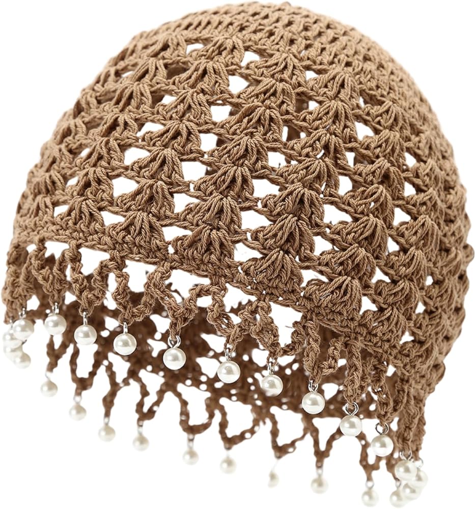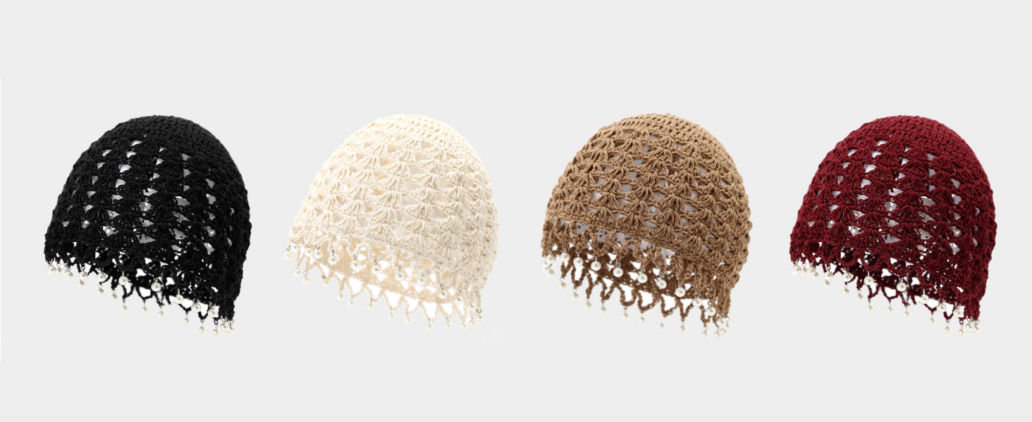 Material: cotton, soft and skin-friendly knitted fabric, excellent hand-crocheting skills, hollow out Design makes it breathable, lightweight, elastic, and not easy to deform. Ensure this cute pearl hat fits the head perfectly, providing comfort and fashion