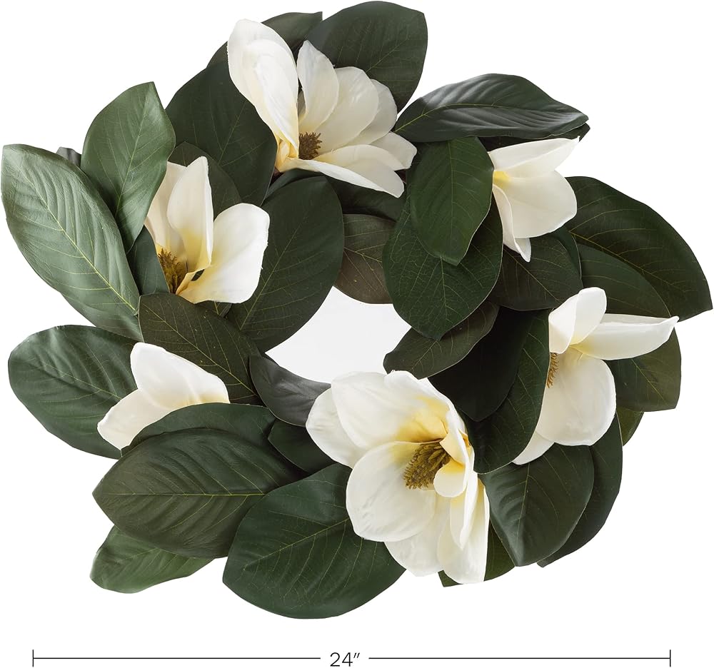 The Magnolia Farmhouse Wreath Set by Pure Garden is a fresh take on the traditional seasonal décor. This set of two 24-inch round artificial magnolia wreaths for front door is artfully crafted with polyester magnolia flowers and magnolia leaves, requiring zero maintenance. The set of farmhouse wall décor is lightweight and easy to hang on any door but should only be used inside or under a covered patio or porch. Use the fall wreath set on your front door, above your mantle, or as wall décor in your entryway, living room, or kitchen. IMPORTANT: Pure Garden is committed to providing the consumer with the absolute best price and value on all of our products. NOTE: This is an exclusive product of Pure Garden and ONLY Wreaths for Front Door by Pure Garden are GUARANTEED to be genuine. Avoid buying counterfeit products and transacting with unauthorized sellers. Pure Garden is a registered trademark protected by U.S. Trademark law and will be vigorously defended.