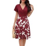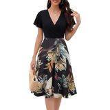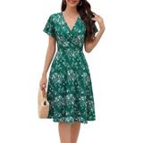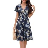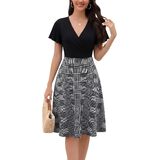 Women's Summer Dress 2026 Vintage Casual Office Professional Elegant Work V Neck A Line Knee Length Dresses with Pockets