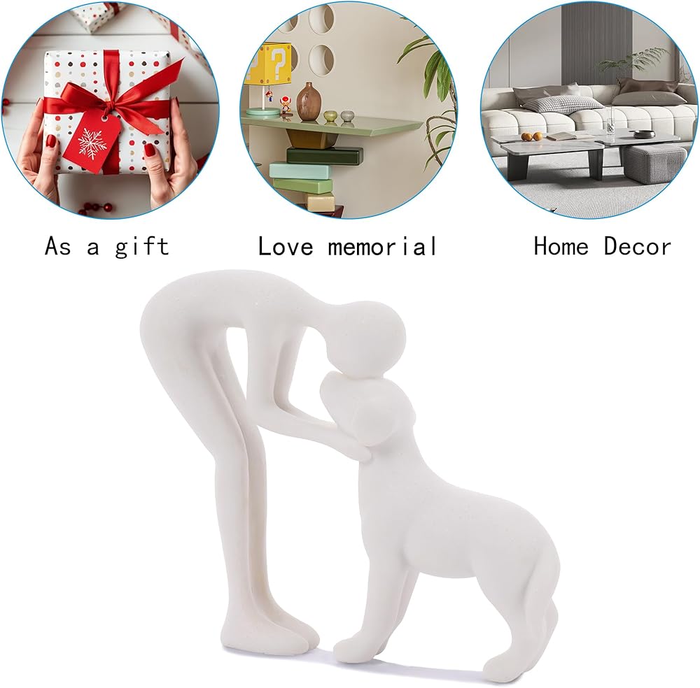 Unique design. The interactive scene between man and dog was recorded with the model, expressing the friendship and affection between man and dog. It can make your home more loving. Specifications. Measuring 5.9 inches long, 1.57 inches wide, 5.1 inches high and weighing 0.43 pounds, it can be placed anywhere you want.