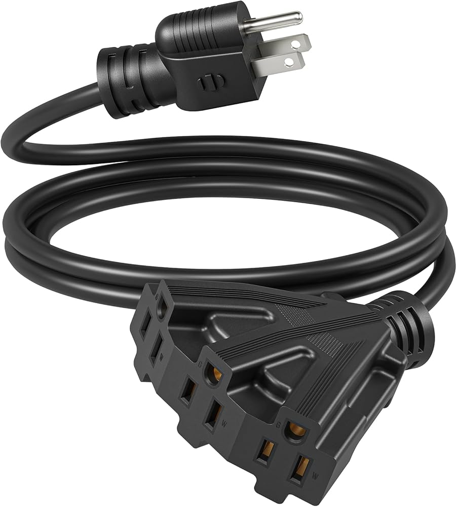 [3 Outlet in 1 Cord] Multi plug extension cord comes with a pigtail triple tap to accommodate power adapters and bulky plugs; allows you to power multiple appliances simultaneously, a great choice to save sockets and maximize usage of power strips and wall outlets