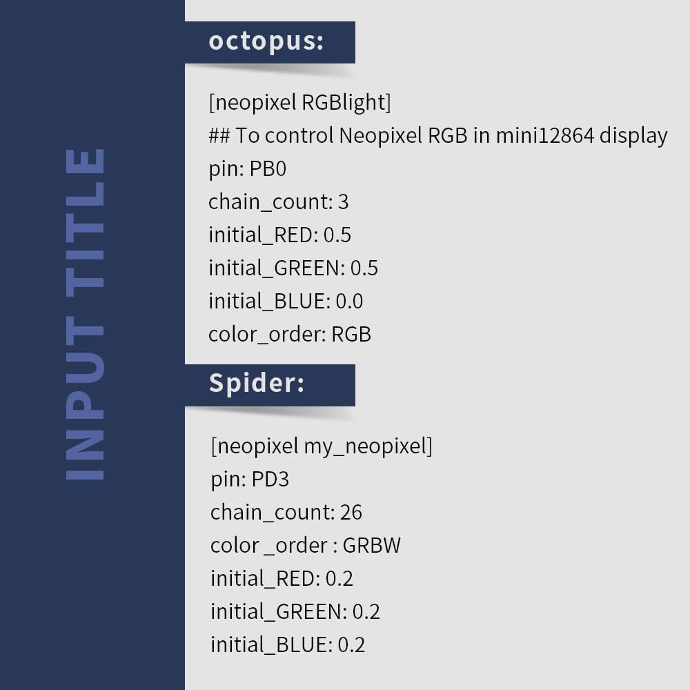 【4】Note:For Spiders and Octopus, different motherboards are set up in different ways. Before powering on, strictly check whether the pins of the light strip correspond to the motherboard, if the wire is wrong, it may cause a short circuit in the 5V circuit.For more information, please refer to the detailed page. Please contact us directly if you are not sure.