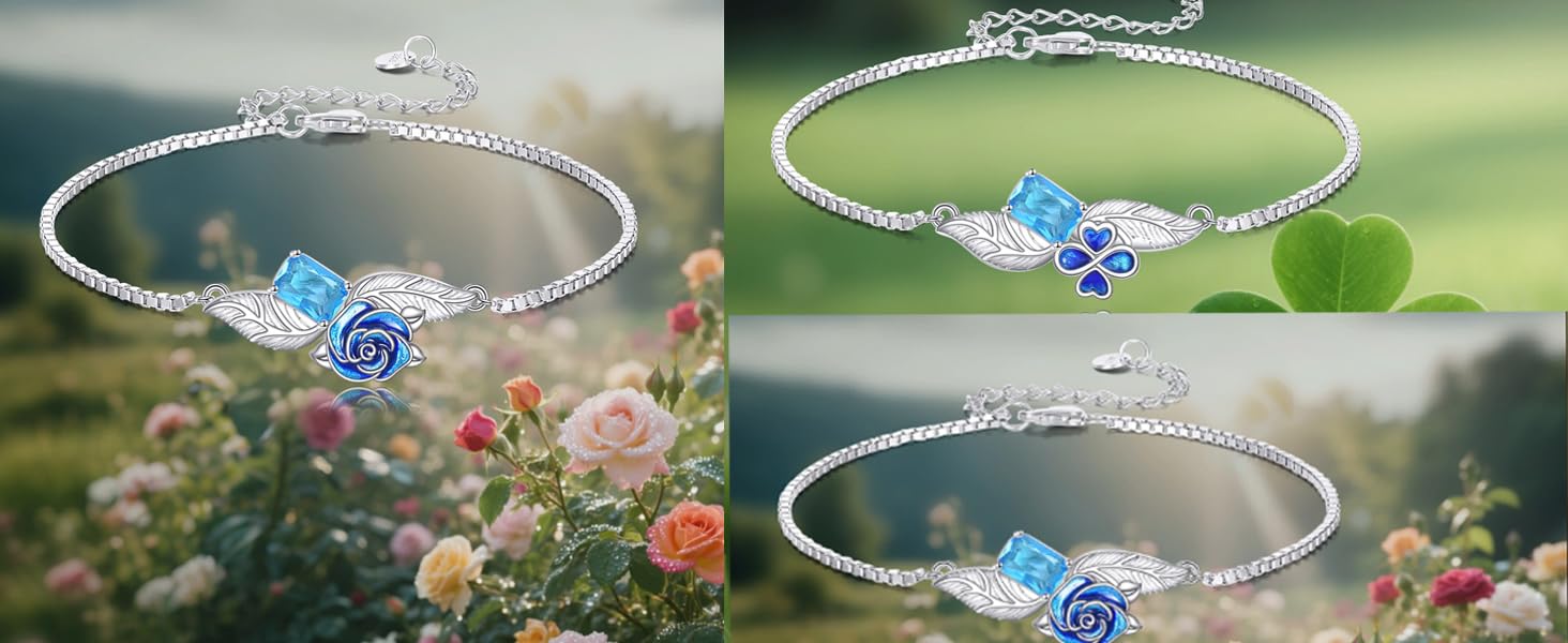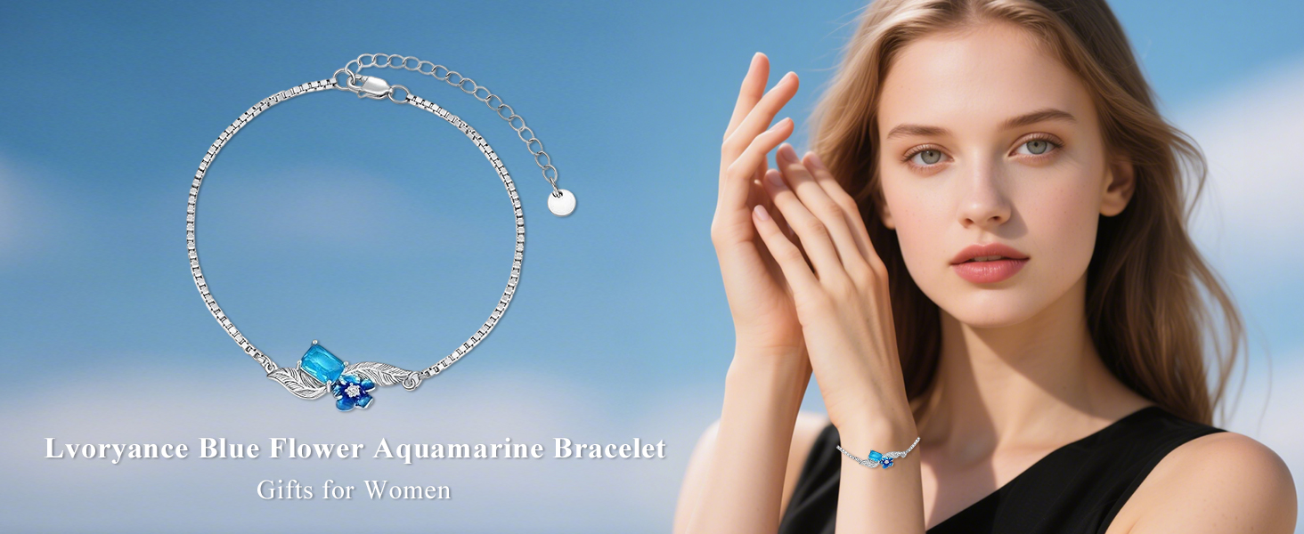 Aquamarine Blue Rose Adjustable Bracelet: This stunning bracelet features a delicate rose design with aquamarine gemstones, offering a feminine and elegant appearance that symbolizes love and beauty.