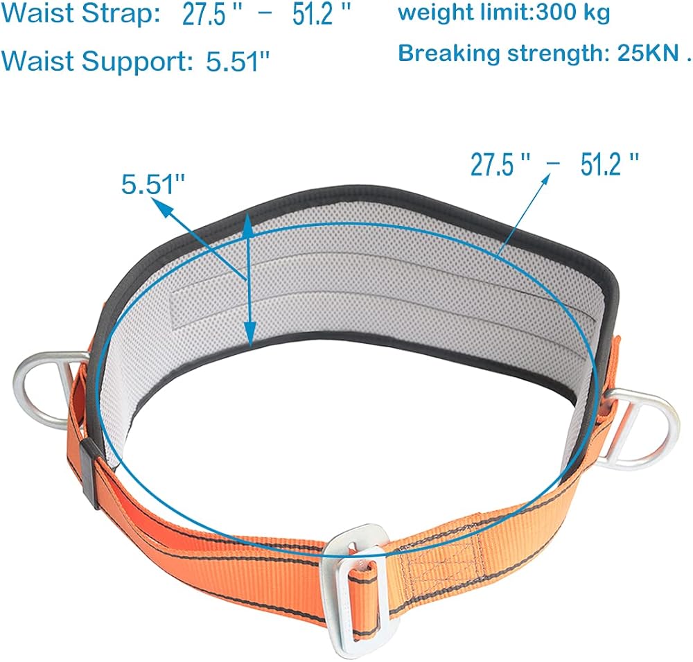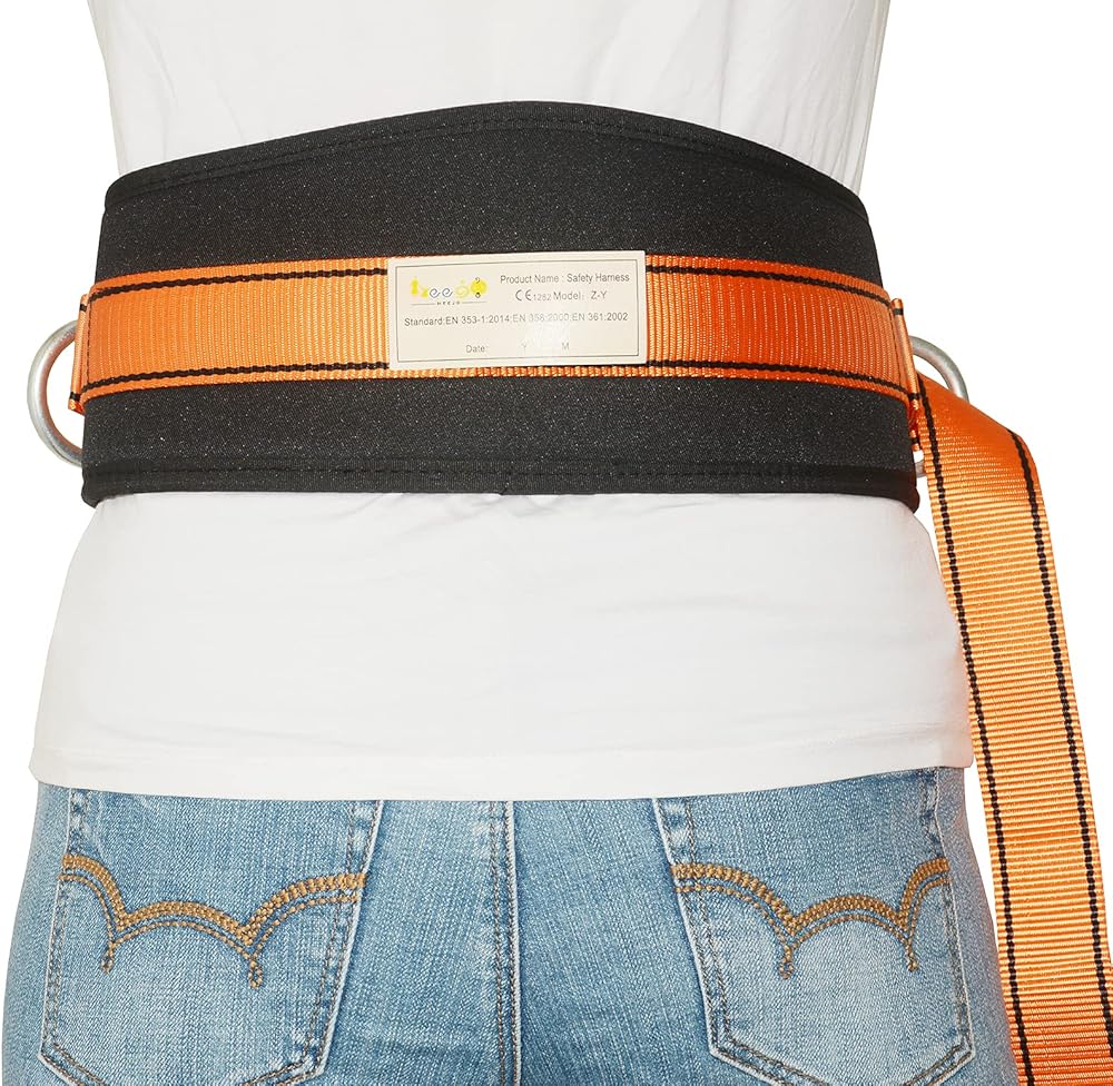※Durable Polyester Construction—Durable polyester construction protective harness, High tensile strength, abrasion resistance, low friction coefficient. Fit for the waist 28" - 51" , your family can use same body belt , safety escape equipment for household prepared. Note: This is a small climbing harness. It is not suitable for particularly fat individuals.