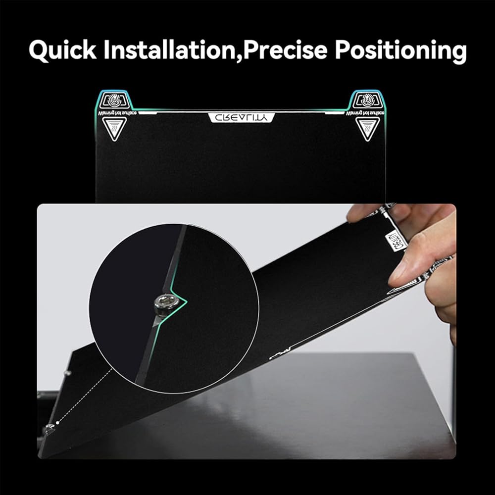 🤗 𝐄𝐚𝐬𝐲 𝐭𝐨 𝐑𝐞𝐦𝐨𝐯𝐞 𝐏𝐫𝐢𝐧𝐭𝐬 - The microporous composite coating on the surface of this Creality glass build plate shrinks as the hot bed cools, which greatly ensures that a complete small print can be picked up by hand without any tools, and large prints can be easily removed using tools, saving at least 30% of the time you take off the prints.