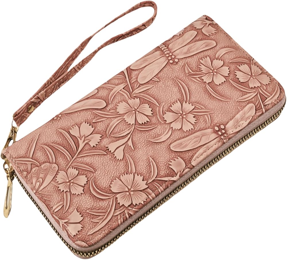 • Elegant Floral Design: This women's wallet is crafted with vegan leather, complemented by smooth-gliding zippers and a detachable wristlet strap. Embossed floral patterns elevate tactile sophistication while resisting scratches