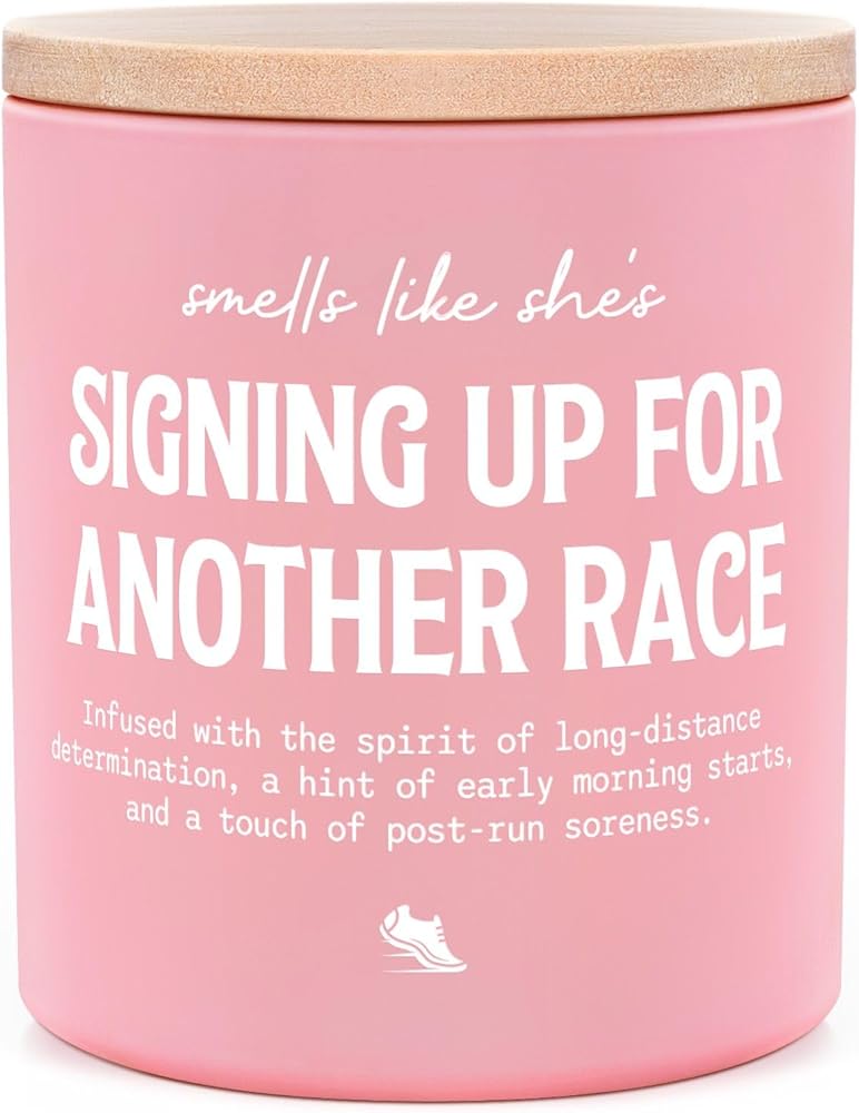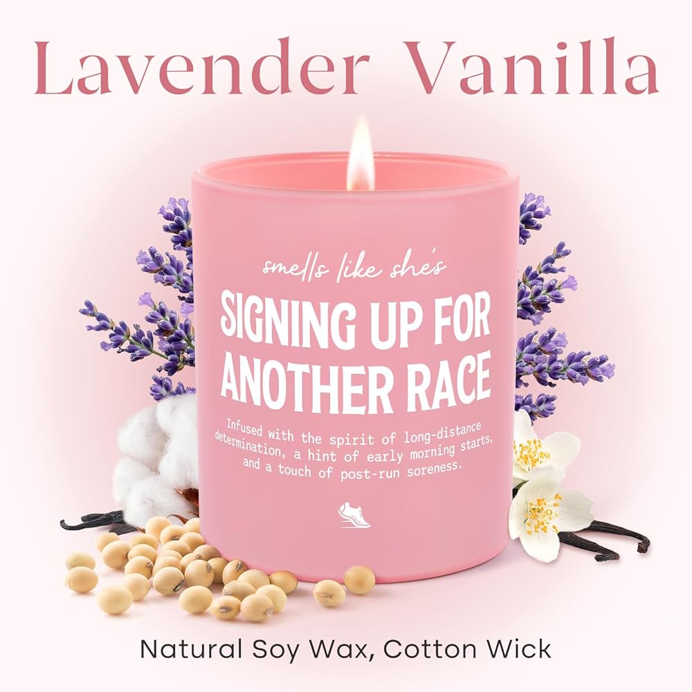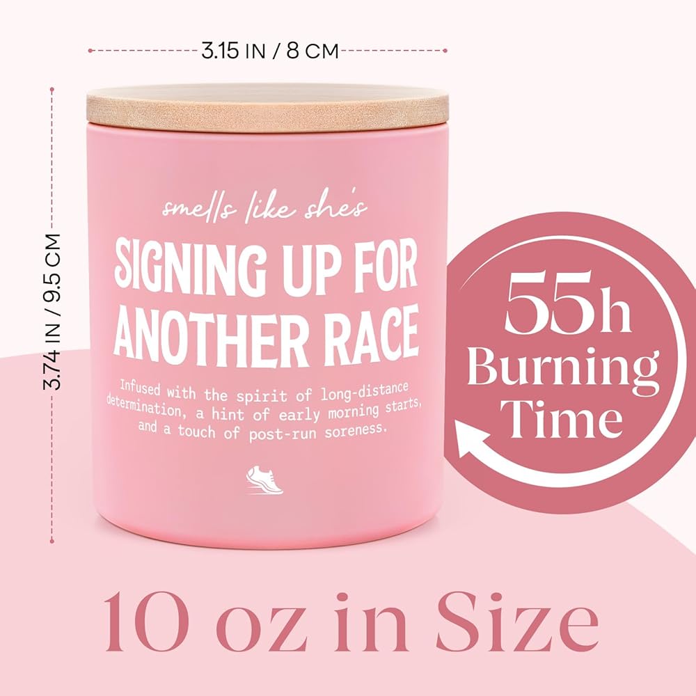 【Perfect Running Gifts for Women】Celebrate her unstoppable spirit with this pink “Signing Up for Another Race” candle — a special running gift for women who love running, marathon, fitness, and chasing goals. Perfect as a cross country gift, NYC marathon runner gift, half marathon gift, or a track and field gift. Ideal for marathon runners, trail runners, and athletes