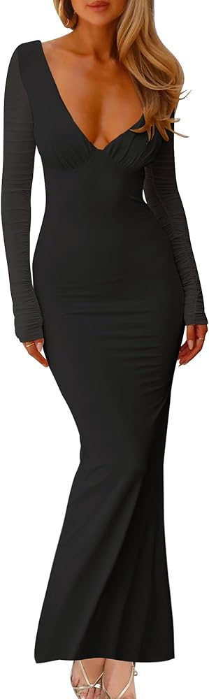 Design:The elegant party dresses are featuring , V - neck, long sleeve, mesh , bodycon fitted, maxi length. No zippers. It's a must - have addition for a trendy wardrobe