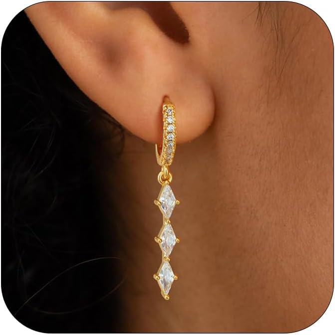 ❤Hoop Dangle Earrings❤: These gold earrings combine hoop earrings and dangle earrings, these pendants are embedded with cubic zirconia of different shapes, sparkling and showcasing your unique beauty