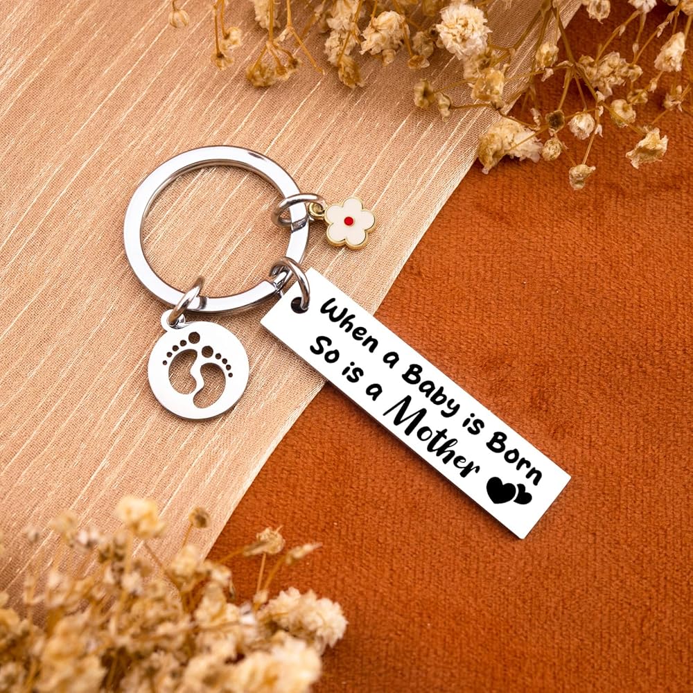 Celebrate the magic of new motherhood with this touching keychain, featuring the heartfelt quote “When a Baby is Born So is a Mother”—the perfect gift for first-time moms, mothers-to-be, or anyone embracing this special journey. Crafted from durable stainless steel with a laser-engraved message, it's a premium keepsake that preserves precious memories, ideal for baby showers, push presents, or post-delivery celebrations. Versatile enough to shine as a pregnancy gift, hospital present, or Mother's Day token, it resonates with all mother figures—birth moms, adoptive moms, and stepmothers alike. More than a gift, it's a daily reminder of love, fitting perfectly on diaper bags, purses, or key rings to accompany her through every milestone.