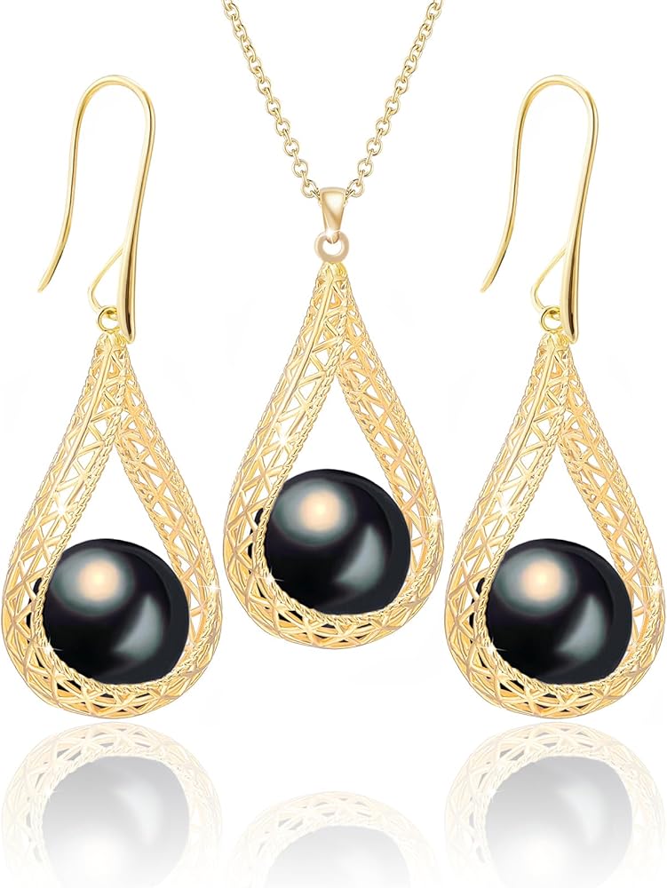 A Dangling Takes on a Large Size Pearl Dangle Necklace Earrings Set. These Big Black Pearl Drop Jewelry Necklace Measure 1.57" High 0.72" Wide, 18 + 2 inch Chain, Earrings Measure 2.42" High 0.74" Wide. The Weight of These Large Pearl Necklace and Earrings Set is 17.2g. These Formal Pearl Dangly Necklace and Earrings Set Feature a 14mm AAA+ Shell Pearl. Gorgeous for Bridesmaids, Prom, Homecoming, Mothers of Bride and Special Occasions; Great for Jazzing Up Causal Attire as Well.