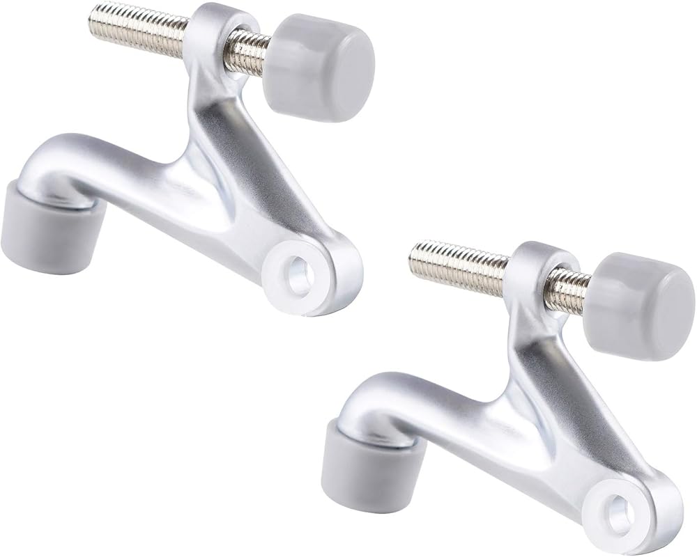 HIGH QUALITY: Midofar Triumph Hardware hinge pin door stop is made of hard metal-zinc alloy. Self-adjusting pad, and stops at any angle, rotate threaded rod to adjust.