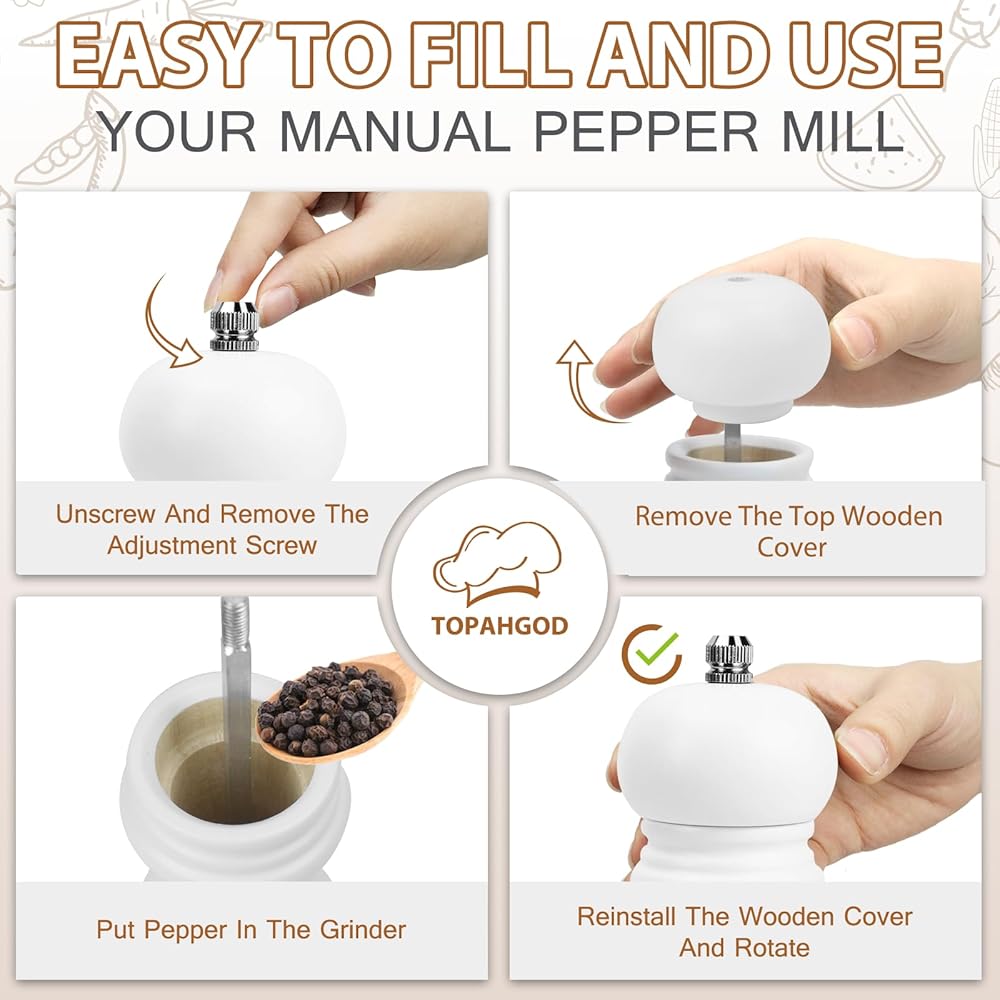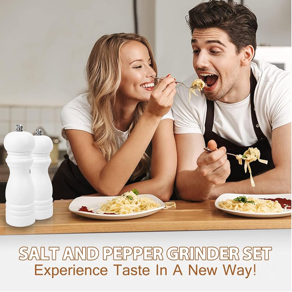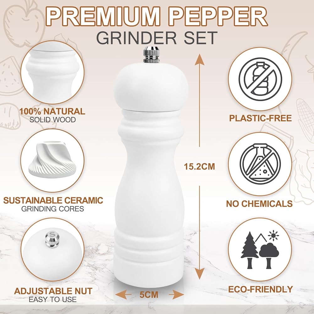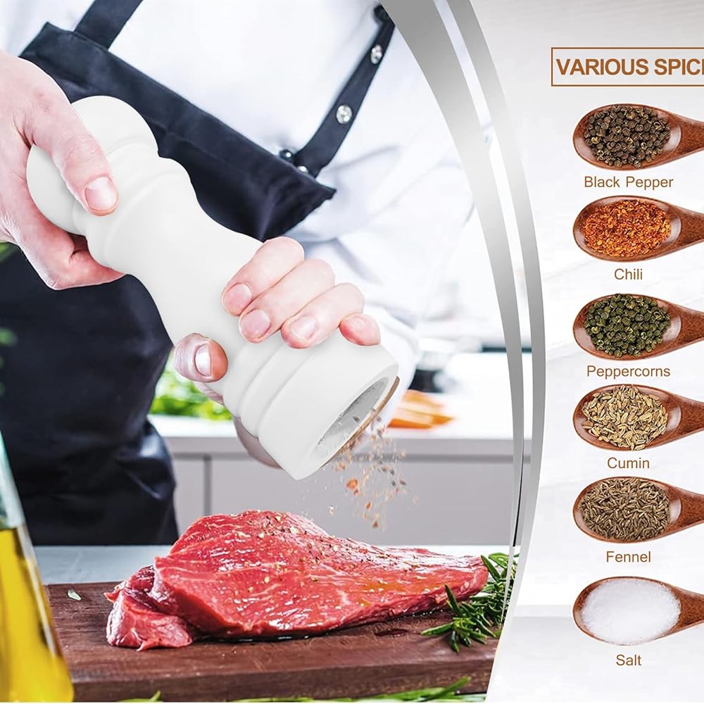HIGH EFFICIENT: Are you still troubled by not being able to get the right spices in time? Now we have solved this problem for you. Our pepper mill with ceramic grinder makes you get the freshest seasoning available in seconds, ensuring better-tasting food. Besides, the "Black/White" body and "S/P knobs" also helps you identify salt and pepper quickly, no more wrong spices.