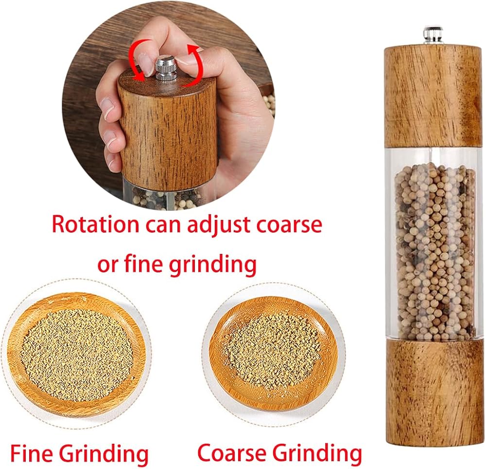 (Pack of 2)Salt and Pepper Grinder Set,Wooden Salt and Pepper Shakers,Adjustable Pepper Grinder and Salt Grinder for Coarse and Fine Grinding,Pepper Mill Grinder-8 Inches (8 Inches)