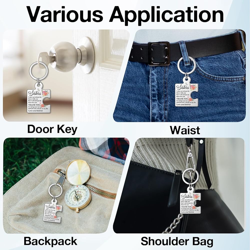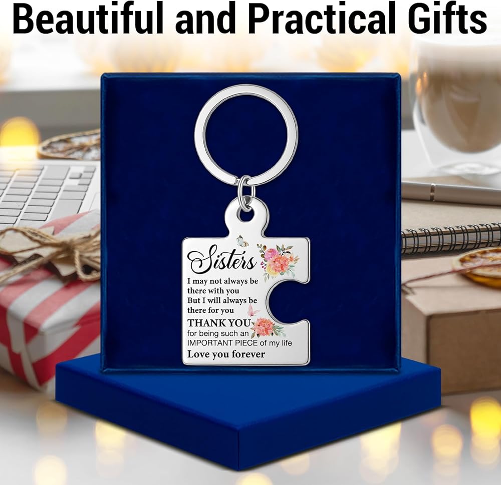 Sister Birthday Gifts from Sisters, I Will Always Be There for You Sister Puzzle Keychain Birthday Christmas Gifts for Sisters - Silver