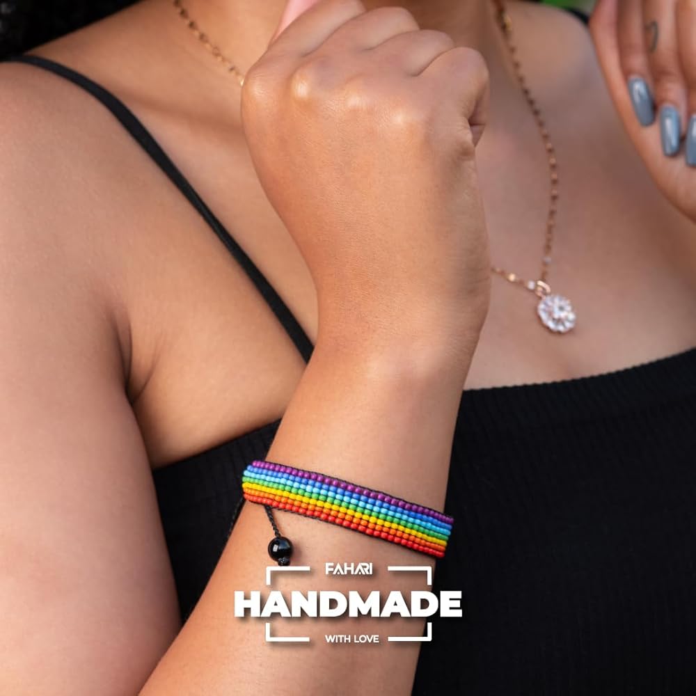 Handmade PRIDE Bracelet - Celebrate Love and Equality | LGBTQ+ Rainbow Pride Flag Jewelry | Gay Lesbian Bisexual Transgender Bracelet | Adjustable Wristband for Women and Men