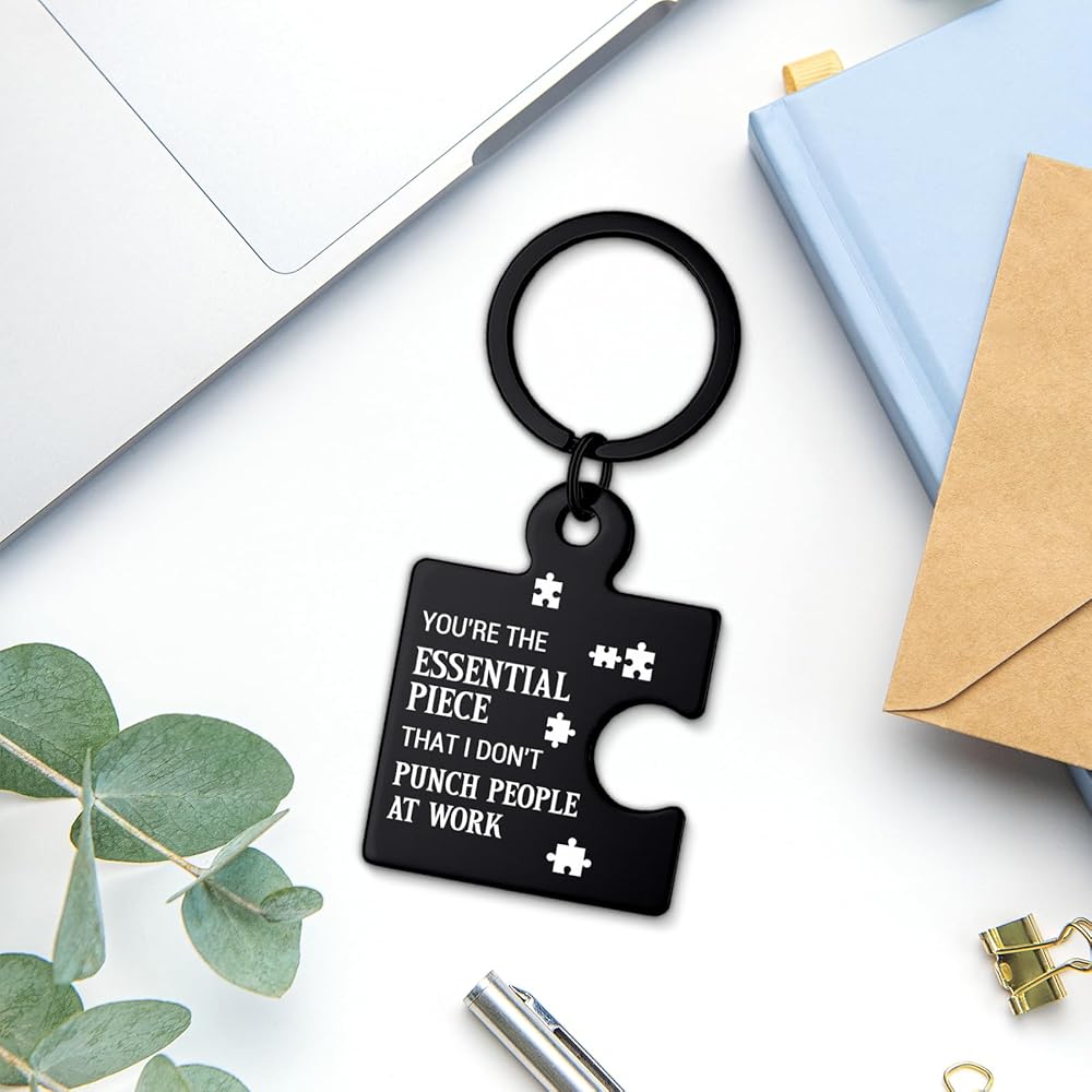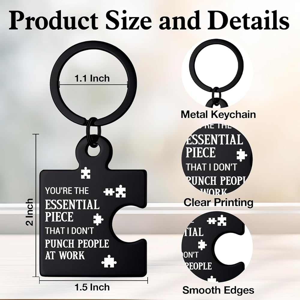 Funny Coworker Gifts for Women Men, Office Friendship Puzzle Keychain Appreciation Gifts for Coworkers Work Besties Colleagues - Black