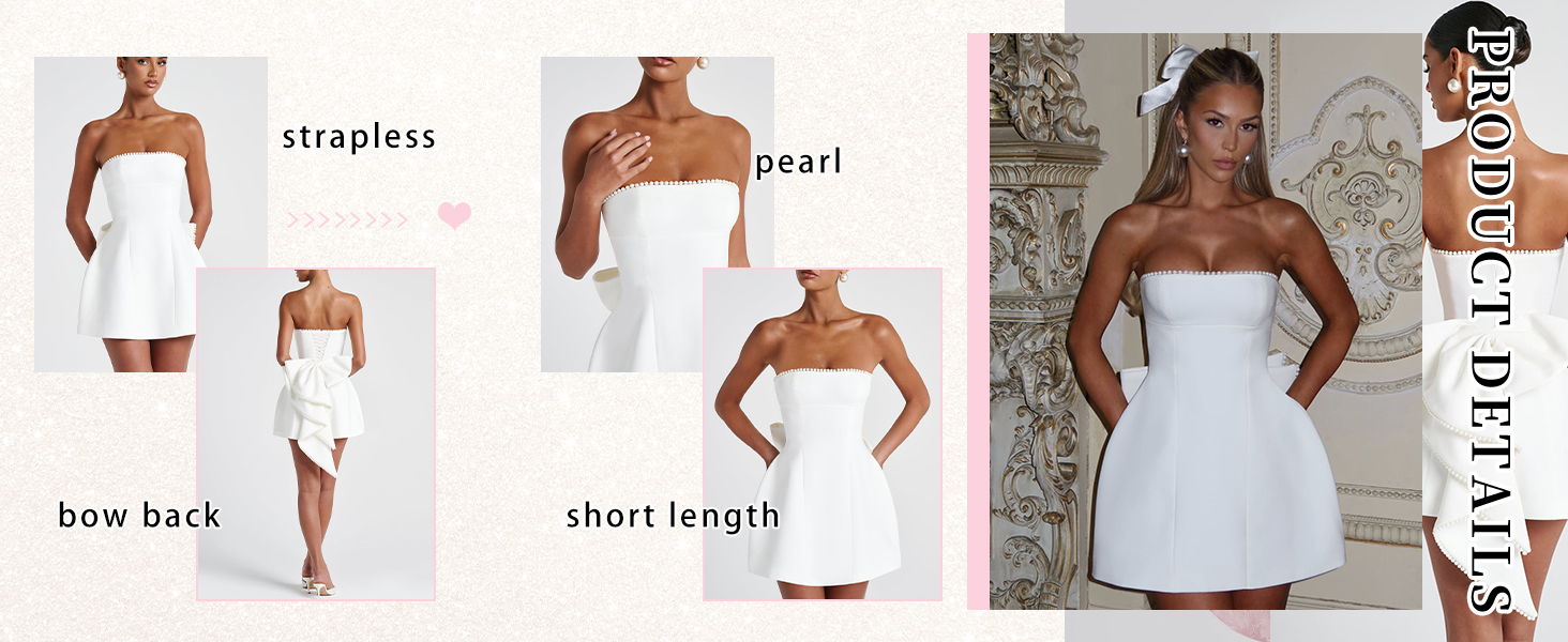 Features: This 2025 satin hoco dress is capable of satin fabric, pearl neck, corset back, detachable bow, mini length.Used for satin prom dresses, 2025 strapless homecoming party dress, short wedding dress, wedding guest dress, evening party dresses, cocktail dress.