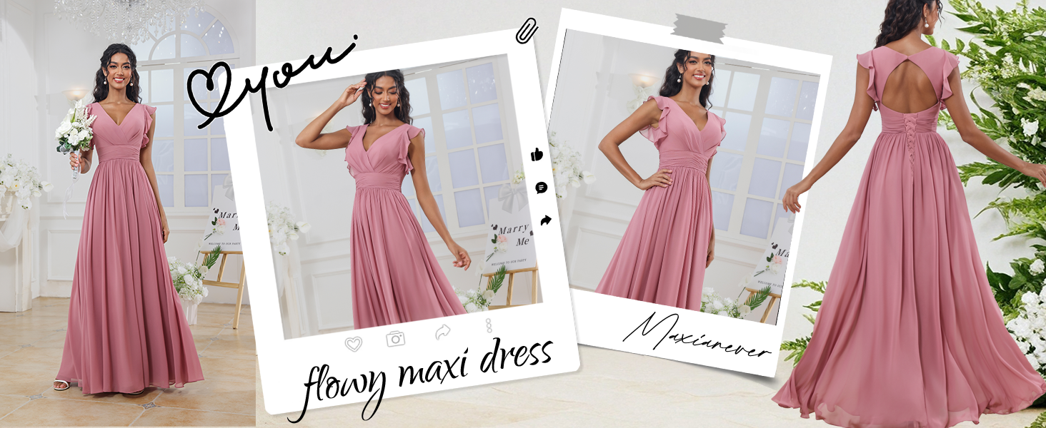 Occasions: This chiffon dress perfect for bridesmaid, wedding, prom, formal, cocktail, party, dinner, date, birthdays, travel, festival, and photoshoot.