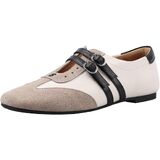 U-lite Women‘s Slip On Ballet Flats Shoes Mary Jane Closed Square Toe Double Buckle Strap Leather Sneaker Comfortable Casual Multicolor Shoes