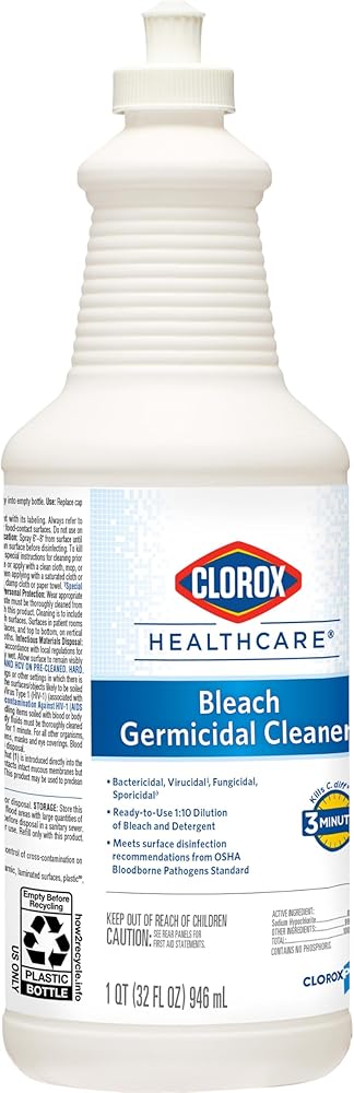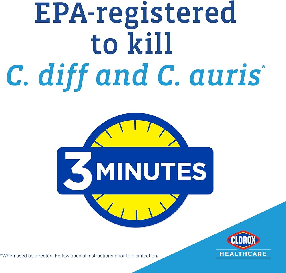 GERMICIDAL BLEACH: Clorox Healthcare Bleach Germicidal Cleaner is a ready to use one-step cleaner disinfectant; EPA registered to kill C.Difficile spores in 3 minutes and 49 other microorganisms in 1 minute