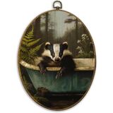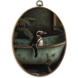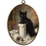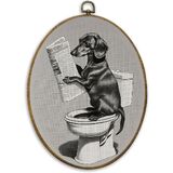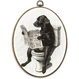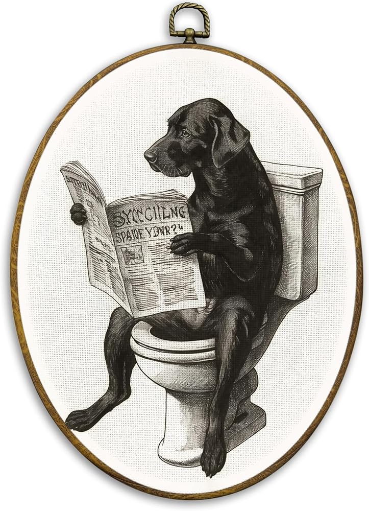 CUANFDDSF Vintage Black Labrador Funny Bathroom Oval Wall Art Decor, Black Lab Gifts Wall Hanging Decor, Funny Lab Dog Reading on Toilet Framed Canvas Prints for Bathroom Washroom, 8.6x11.4 Inch
