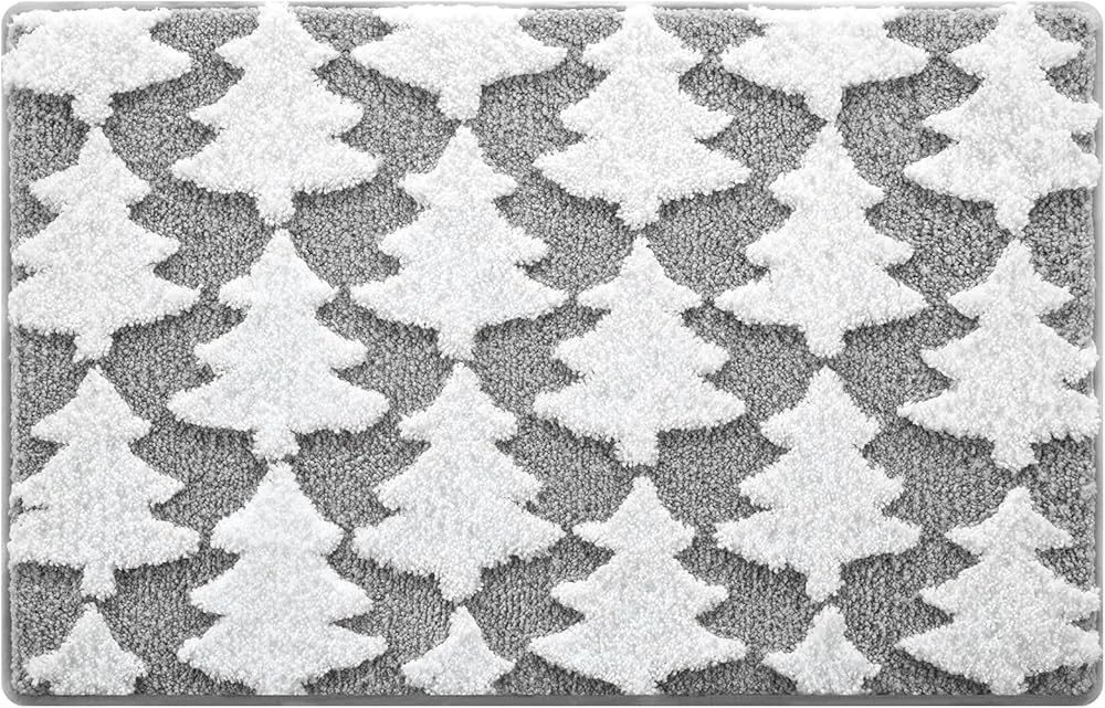 Moutina 3D Christmas Tree Bathroom Rugs 20x32 Inch, Soft and Absorbent Tufted Winter Grey Bath Mat Non Slip Washable, Christmas Bathroom Decor Rug Holiday Decorations
