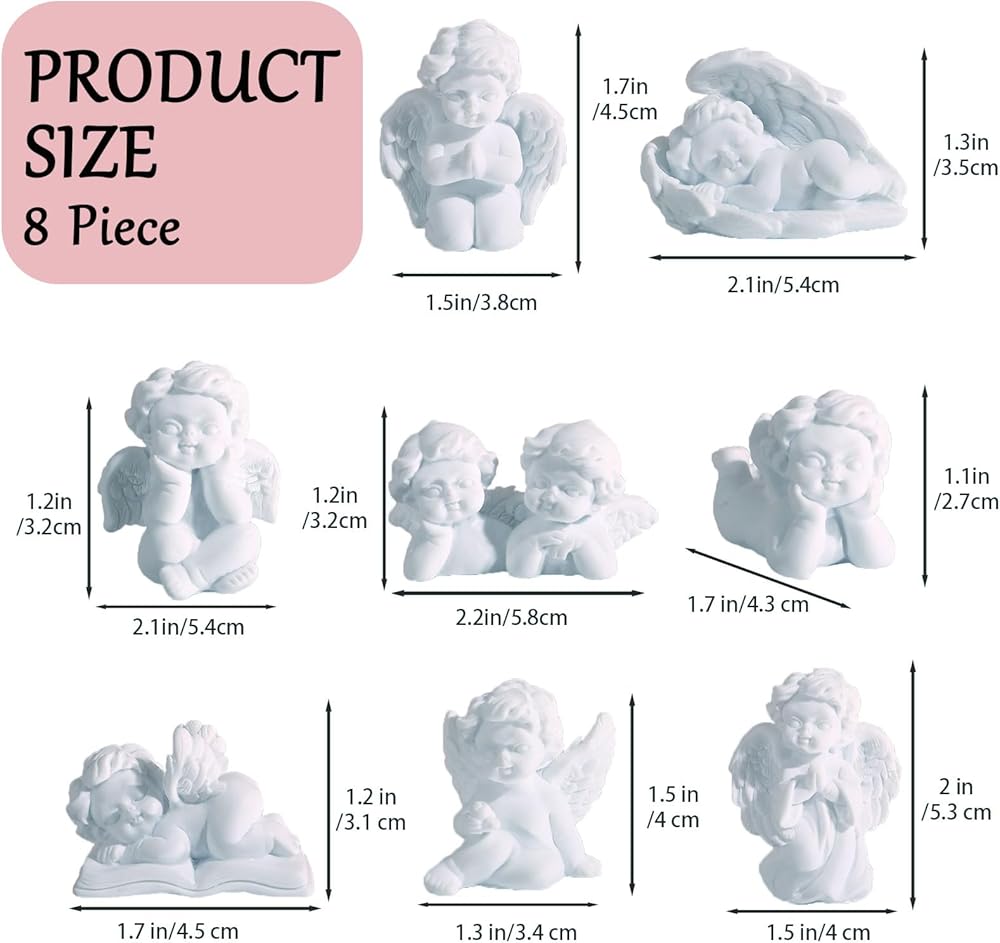 2.【Value Pack】 Set of 8 unique mini angel sculptures, ideal for decorating or gifting. A lovely choice for angel themed decor or heartfelt presents.