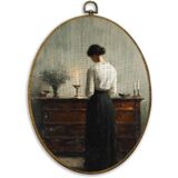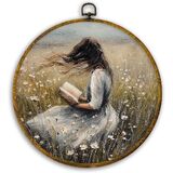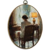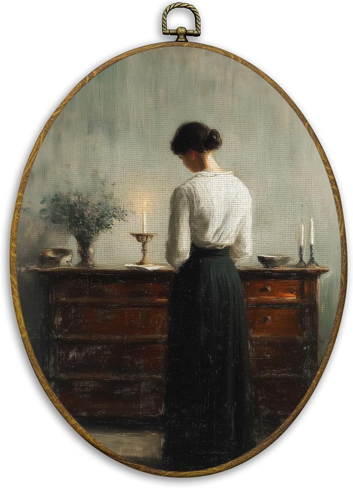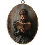 CUANFDDSF Vintage Woman Reading Book Oval Wall Art Decor, Antique Moody Wall Hanging Decor, Bookish Bookworm Aesthetic Framed Canvas Prints for Home Library Reading Room Gallery, 8.6x11.4 Inch