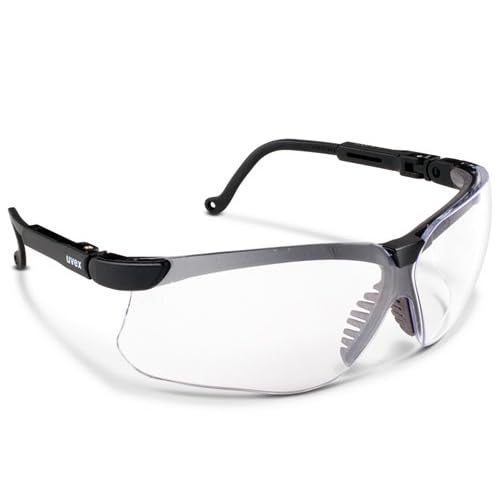 Uvex Genesis Safety Glasses - Black Frame Clear Lens. Have a cushioned, vented brow guard for cooler comfort. Ultra-soft flexible nose bridge "fingers" ensure a gentle, non-slip fit. The Uvextreme treated lens adds anti-fog, anti-scratch, anti-glare and UV light protection. ANSI certified.