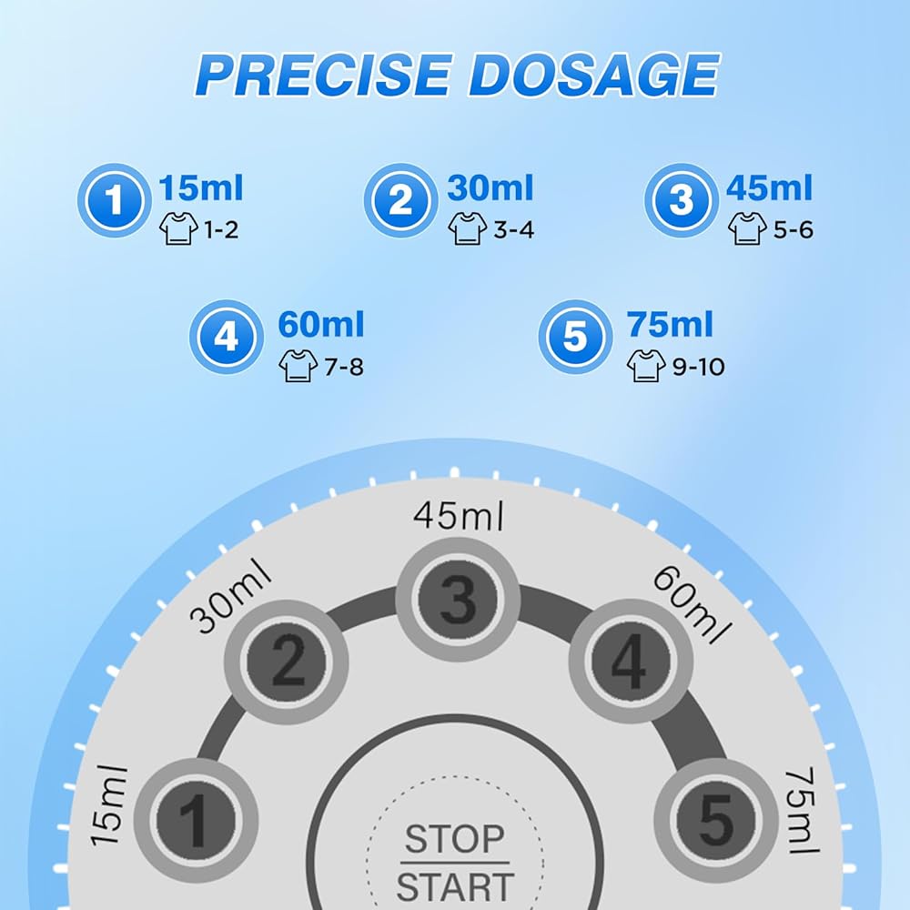 LAUNDRY DETERGENT DISPENSER – STOP OVER-POURING: One finger, one second—15-30-45-60-75 ml or anywhere in between. Helps reduce detergent waste, ends drips, guesswork and messy sleeves.