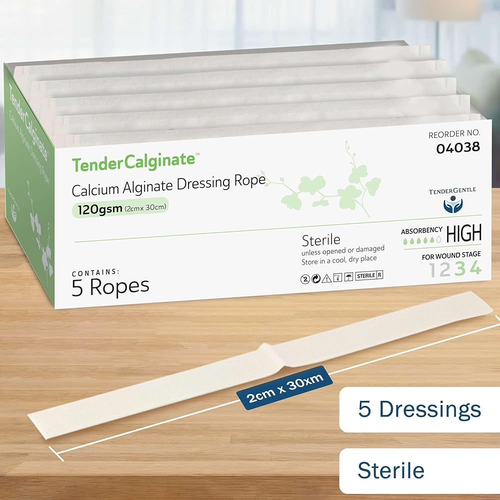 Tender Gentle's calcium alginate ("Calginate") dressings aid with packing and wound discharge.