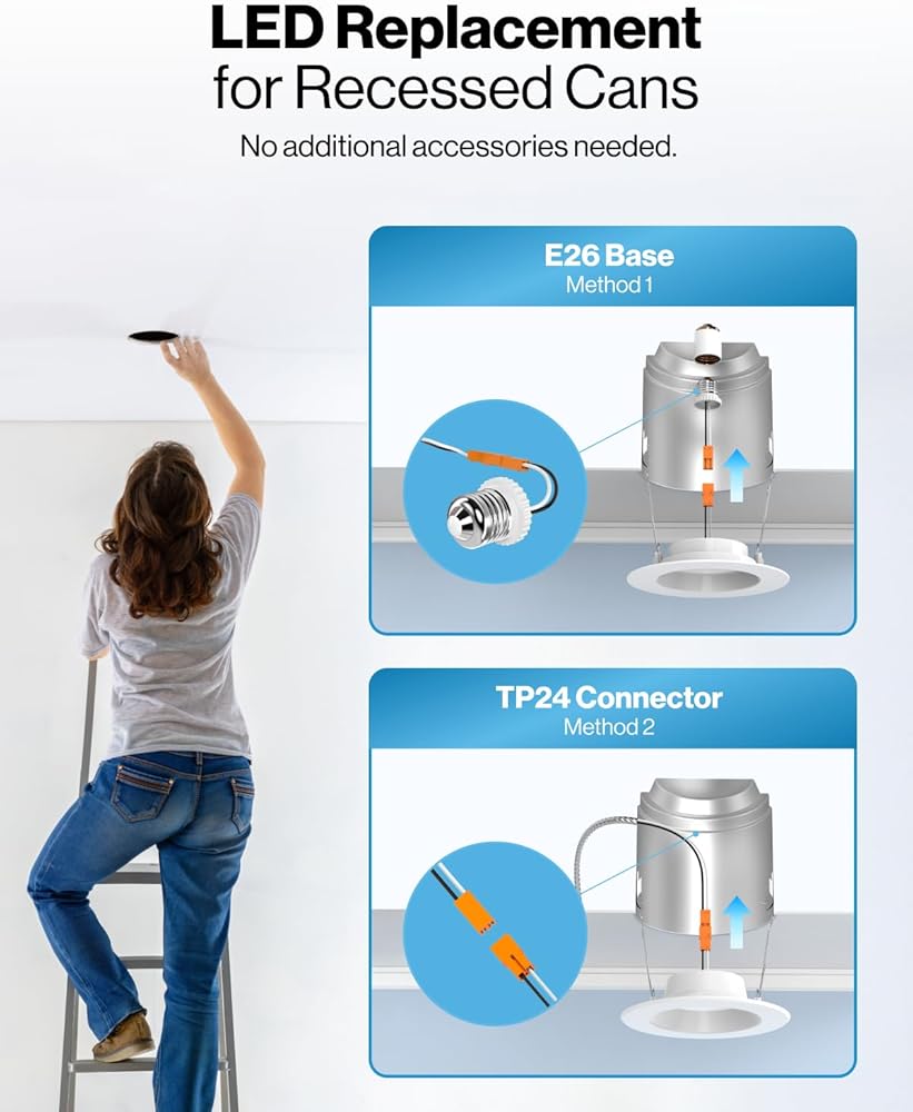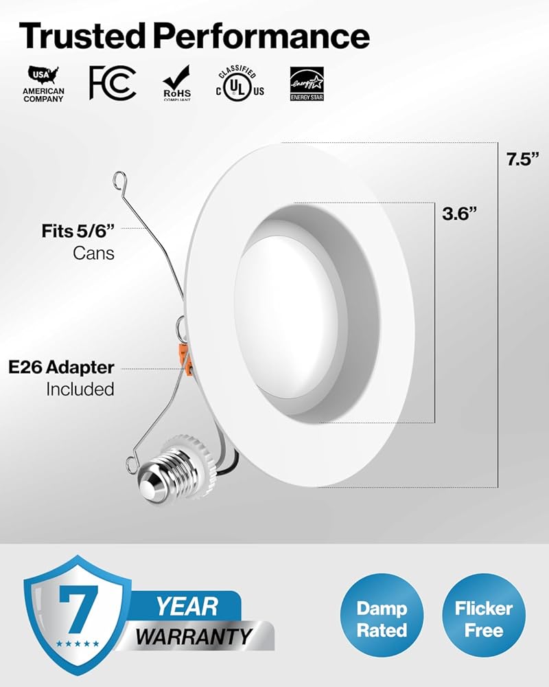 ✅ SIMPLE INSTALL - Follow our installation guide for a quick and easy setup. Suitable for damp locations. Directly install retrofit fixture to the ceiling in a new or existing recessed can for bright light in your kitchen, family room, bedroom, bathroom, and common areas in your home or office.