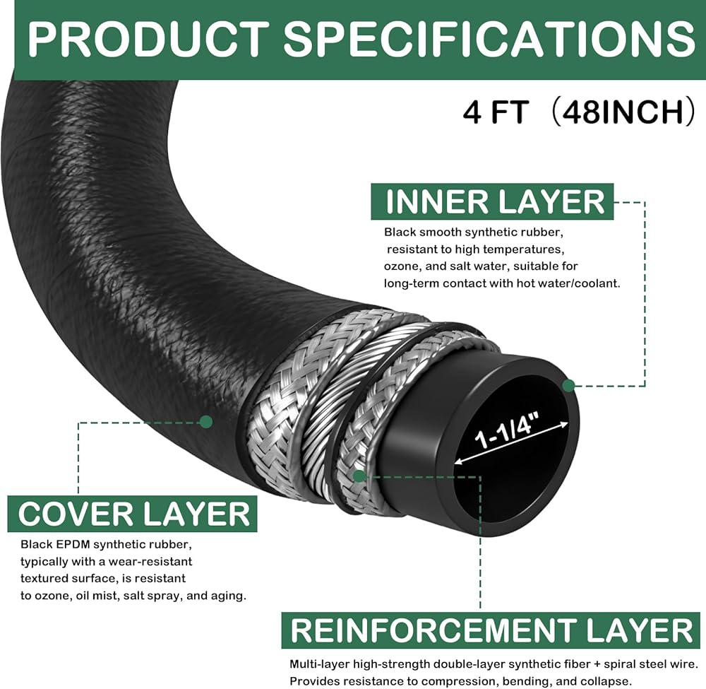 Size: Length 4Ft, ID 1-1/4inch, OD 1-3/4inch