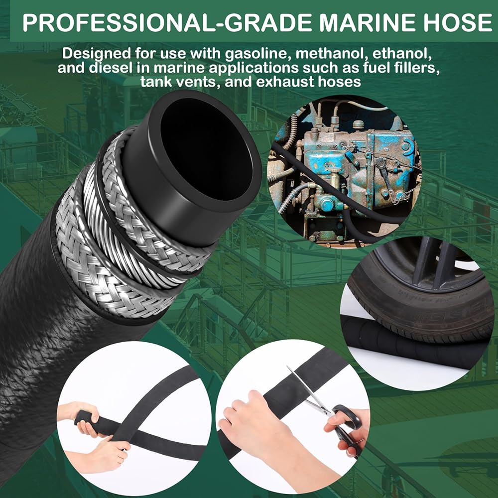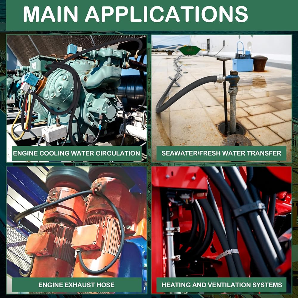 Perfectly suited for wet exhaust systems, this hose is ideal for engine intake, bilge pump intake/drain, scupper drain, toilet intake/drain, and water tank vent/pump-out connections. Its multifunctional makes it a vital component for every boater seeking reliable marine hoses for boats.