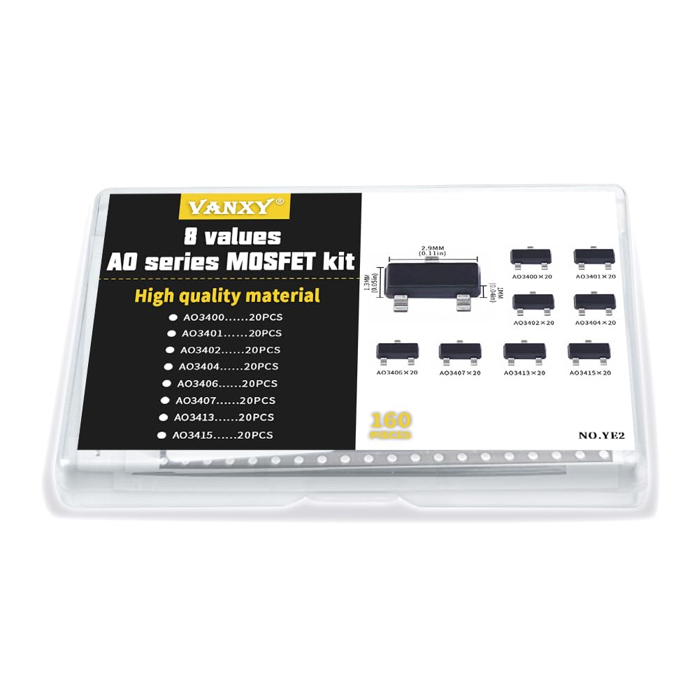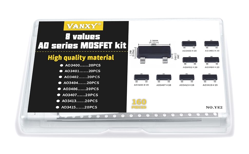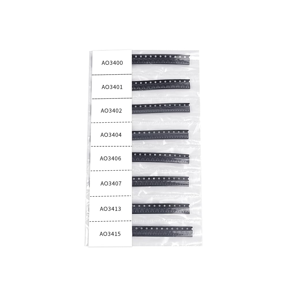 - 8Values each 20pcs, all 160Pcs AO3400 AO3401 AO3402 AO3404 AO3406 AO3407 AO3413 AO3415 SOT23 Field Effect Transistor kit