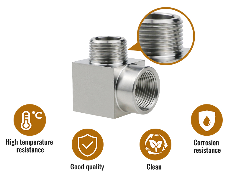 High pressure elbow fitting: surface polishing, clean and burr free threads, compatible with NPT threads, can be used with sealing tape to form a stronger and tighter connection