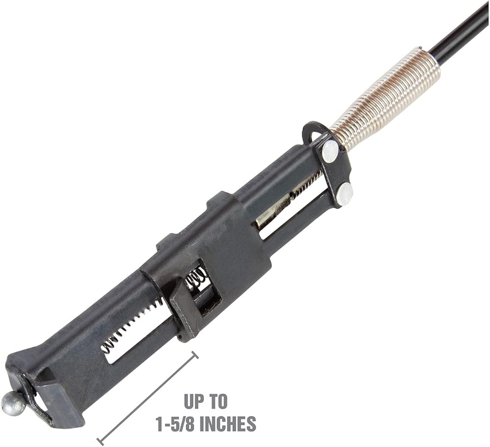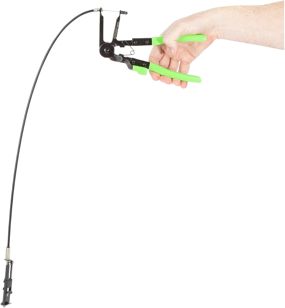 The OEMTOOLS 25246 Hose Clamp Pliers are built to simplify the removal and installation of flat band spring-style hose clamps in automotive and engine systems. Spring clamp pliers designed with a flexible cable, these pliers provide easy access to clamps in hard-to-reach or confined areas—ideal for radiator, fuel, and heater hoses. The flexible hose clamp pliers extra reach combined with a locking mechanism allows the jaws to stay open for hands-free operation, speeding up your workflow and improving safety. The multi-position lock adapts to various clamp sizes, handling diameters from 11/16" to 2-1/2" (18 mm to 63.5 mm) with ease. Coolant hose clamp pliers constructed from durable materials, these hose clamp pliers are engineered for maximum strength and repeated use. Spring-loaded handles and a convenient lever release offer smooth one-handed tension adjustments. Whether you're a professional mechanic or DIYer, these hose clamps pliers are a must-have for efficient and precise hose clamp servicing. Use them in tight spaces where traditional pliers can't reach and get the job done faster. Add the OEMTOOLS 25246 to your toolbox for reliable performance and hands-free convenience on every clamp job.
