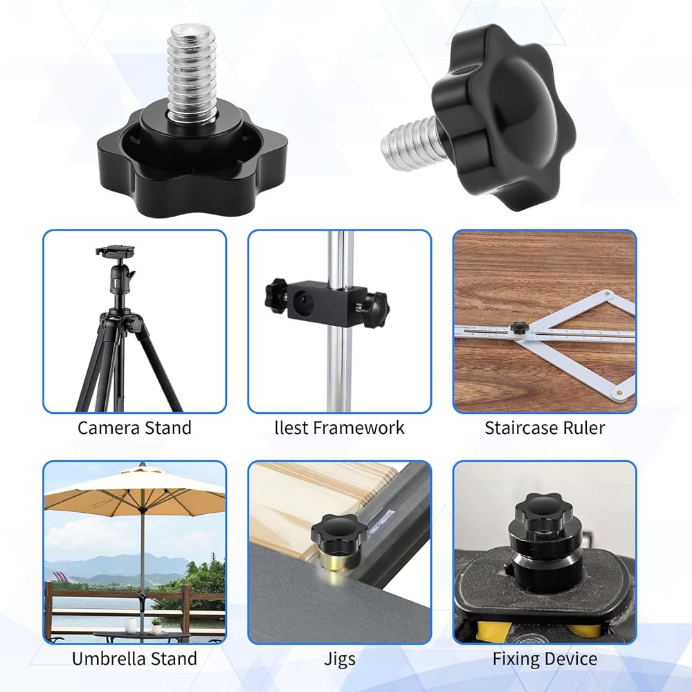 Versatile Application: Ideal for a wide range of uses, including machinery, mechanical instruments, furniture modification, and umbrella base replacement. The 1/4-20 thread size ensures compatibility with various equipment, making these knobs a practical solution for industrial and household needs