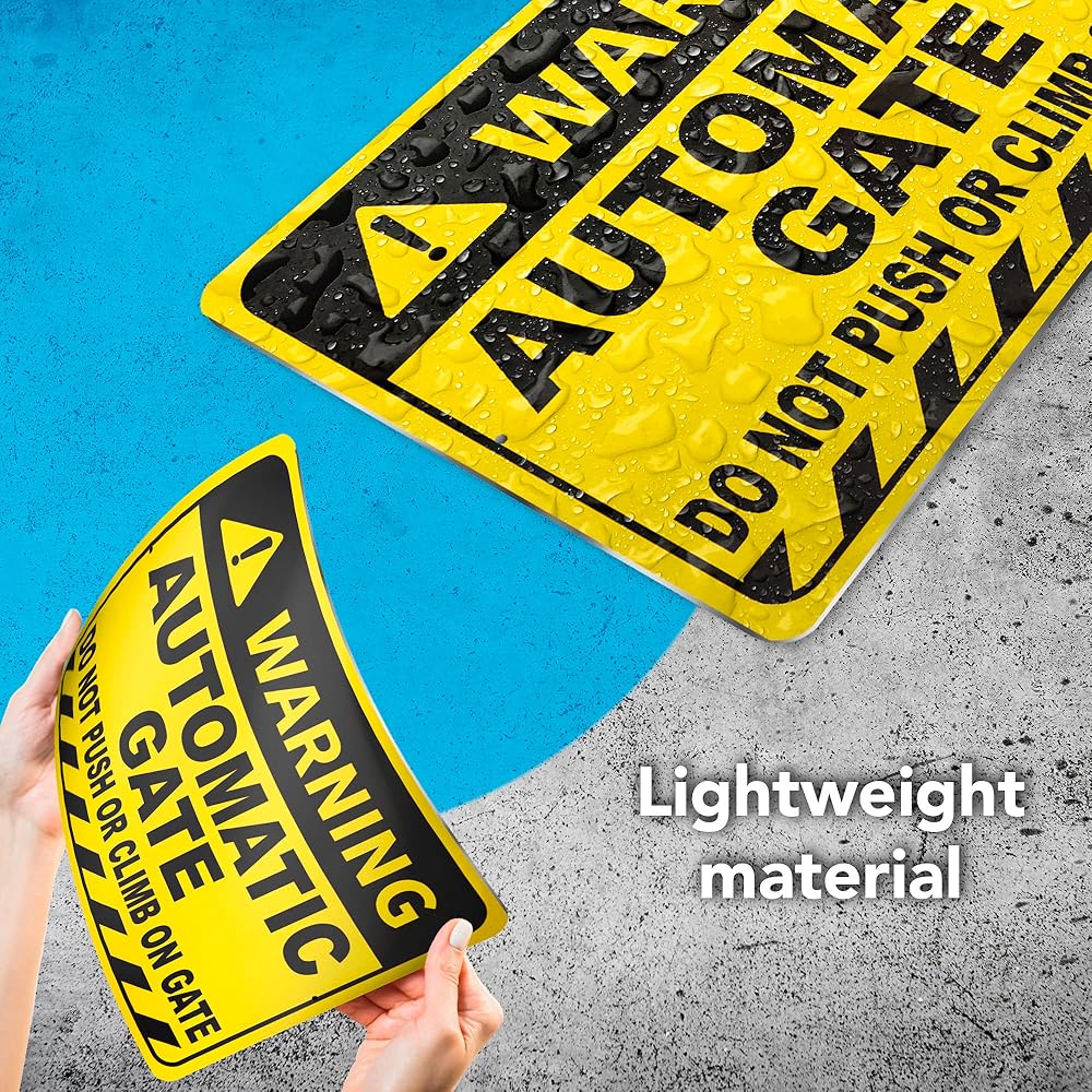 Perfect size : 8x12 automatic gate warning sign printed on one side. The sign has a protective coating in the form of a transparent shipping film.